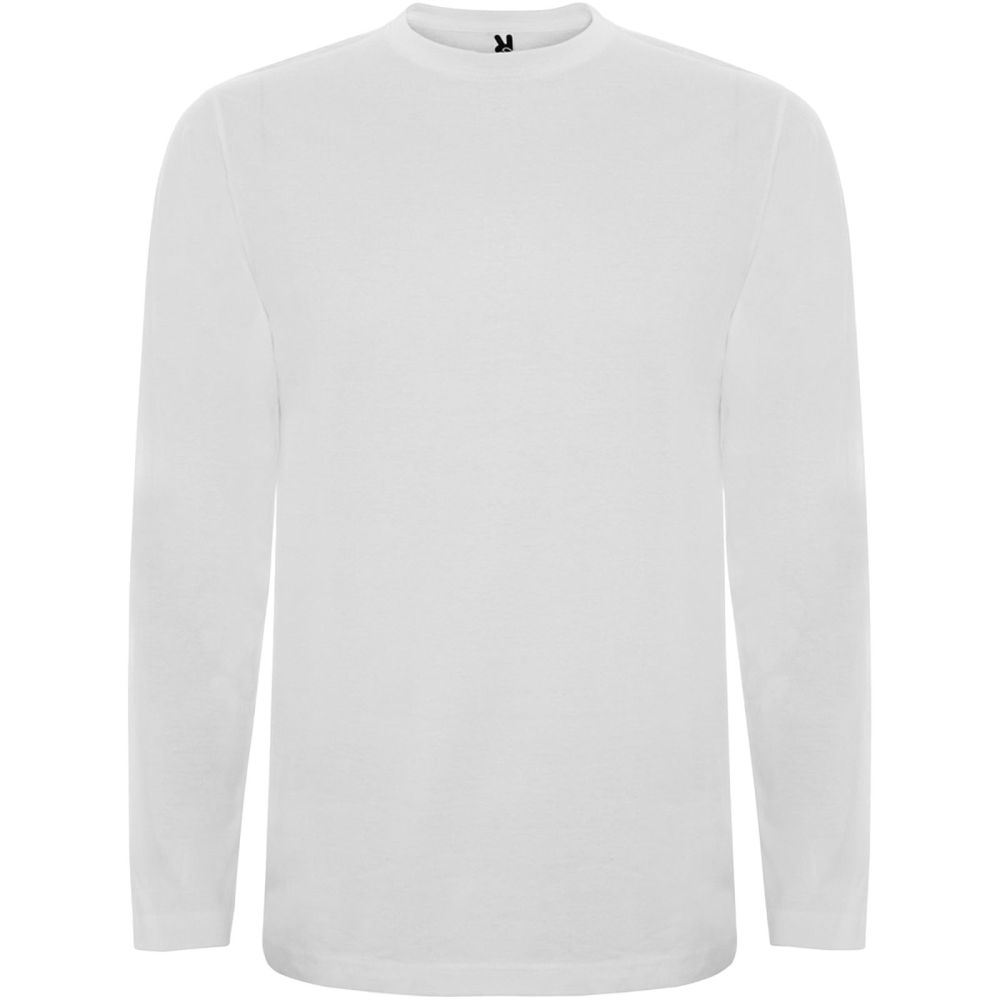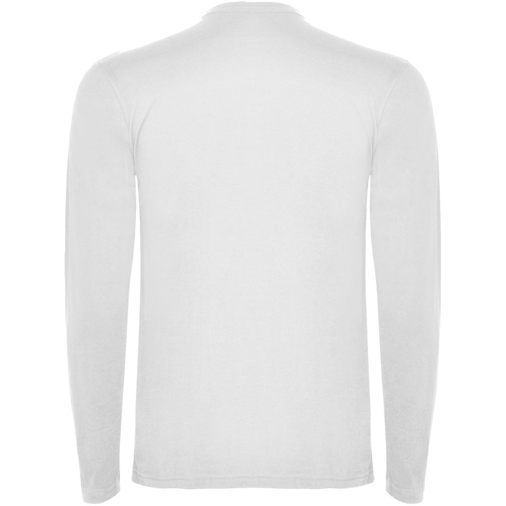 Long-sleeve t-shirt in tubular fabric and 4-layer crew neck. Reinforced covered seams in collar and shoulders. No cuffs. Removable label. Tubular design in adult sizes and side seams in kids sizes. The model is 185 cm and is wearing size L.