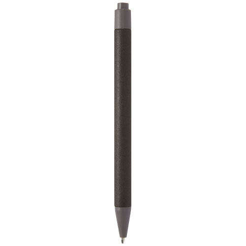 Lightweight ballpoint pen for everyday notetaking. The barrel is made from responsibly sourced crush paper. The brown paper contains the residue from coffee, the green from olives, and the white from corn. The bottom, clip, and tip are made of PLA plastic. Black ink. Writing length: 700 metres.