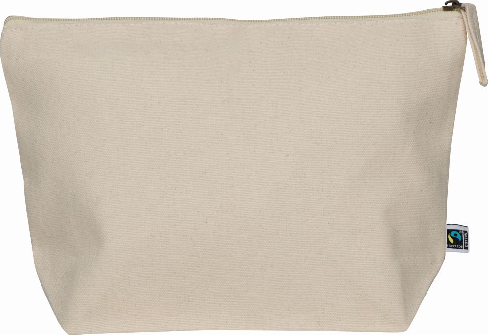 Fairtrade toiletry bag made of cotton (320 g/m2) with Fairtrade label. We print your logo on one side.