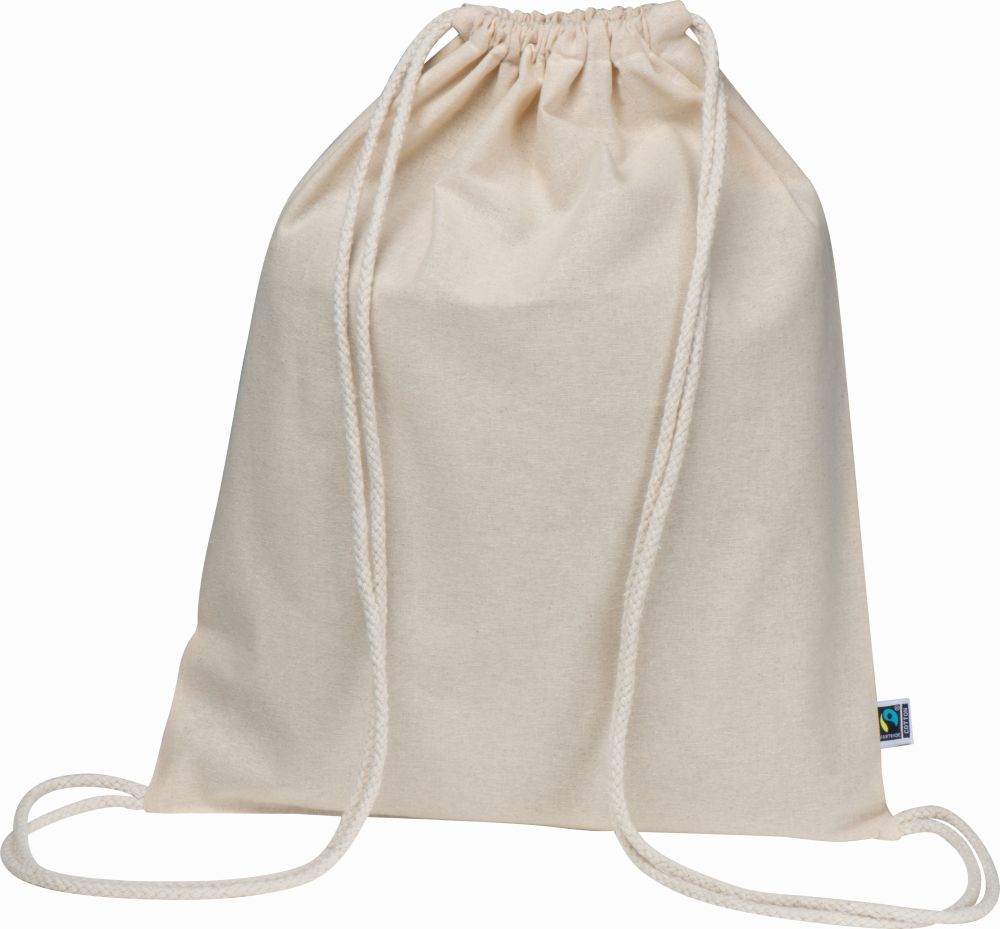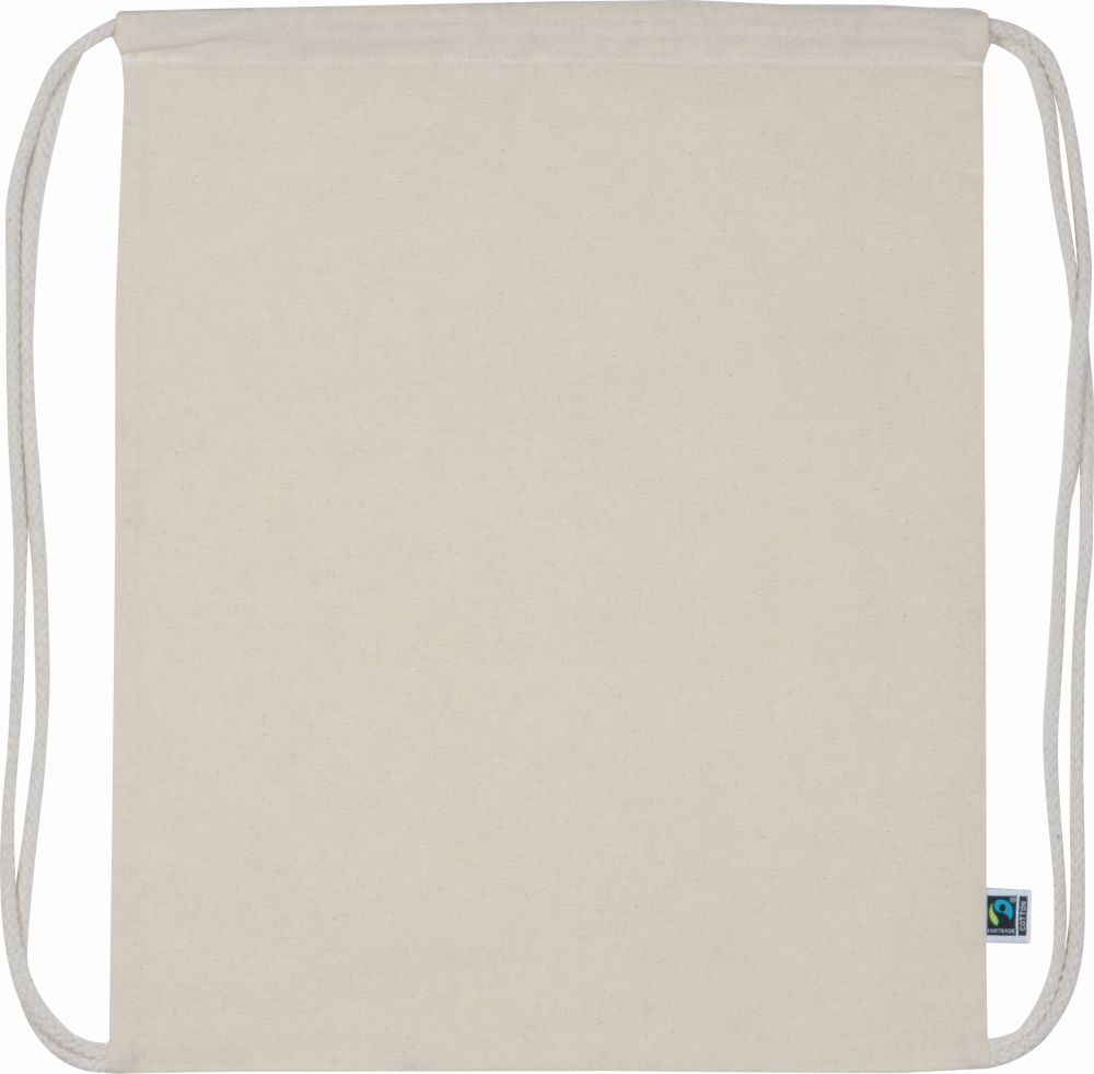 Fairtrade gymbag made of cotton (180g/m2) with Fairtrade label. We print your logo on one side.