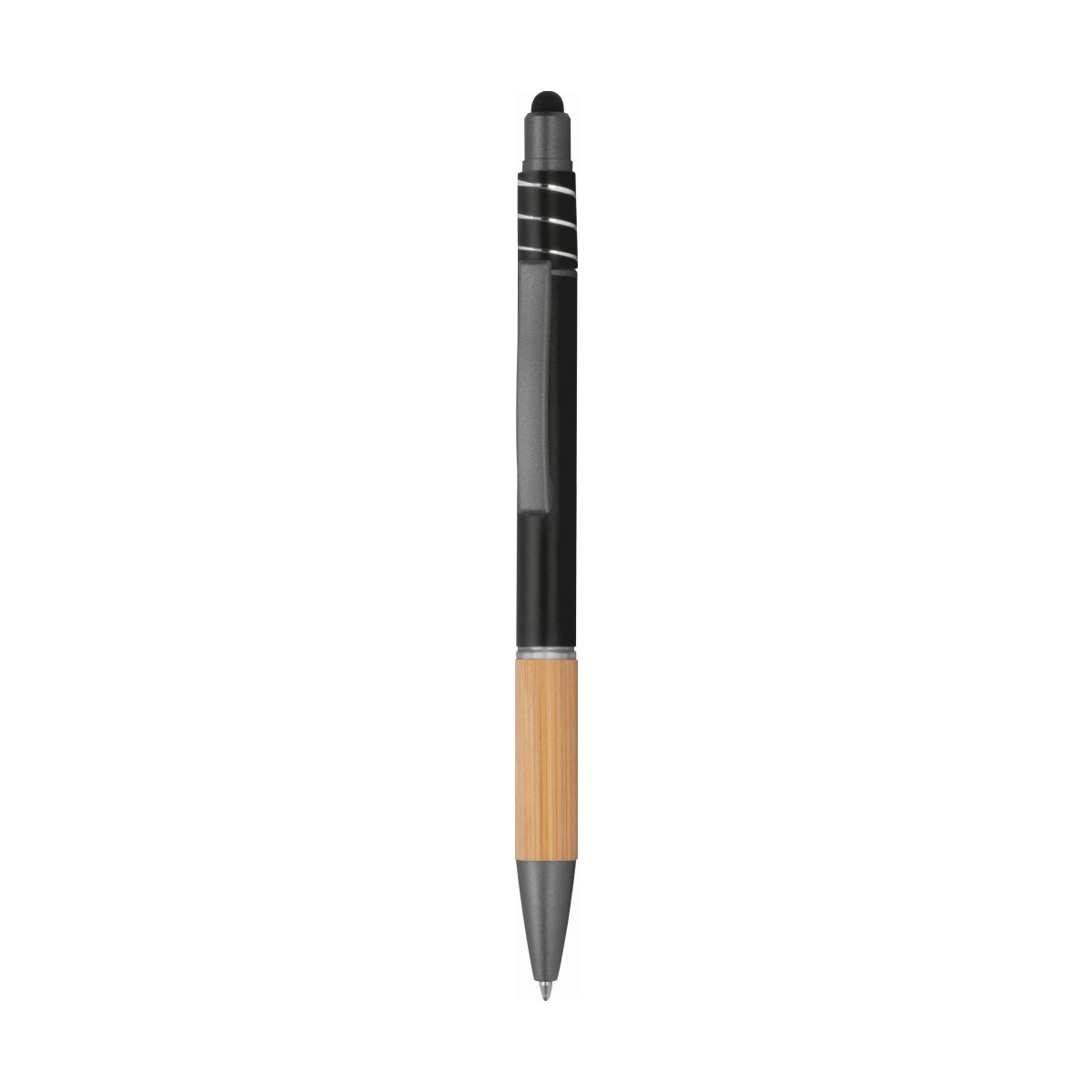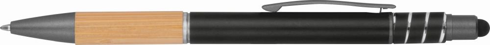 Fidget pen made of aluminium with blue refill, touch function and rotating fidget. Turn the fidget instead of clicking! Your logo is engraved to the right of the clip.