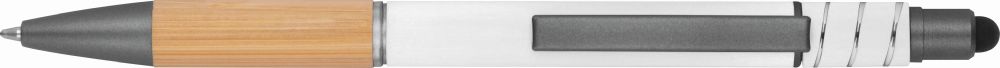 Fidget pen made of aluminium with blue refill, touch function and rotating fidget. Turn the fidget instead of clicking! Your logo is engraved to the right of the clip.