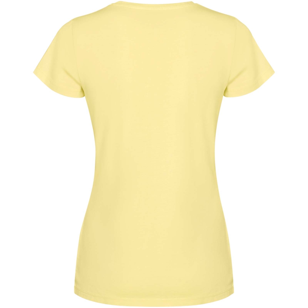 Short sleeve t-shirt for women. Acid-wash finish .1x1 ribbed crew neck and side seams. Tone-on-tone cover stitch at the neck.
