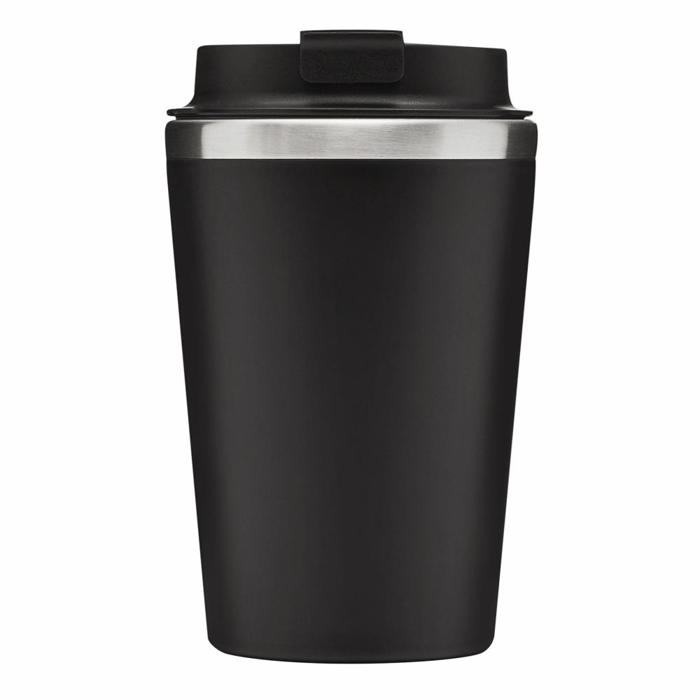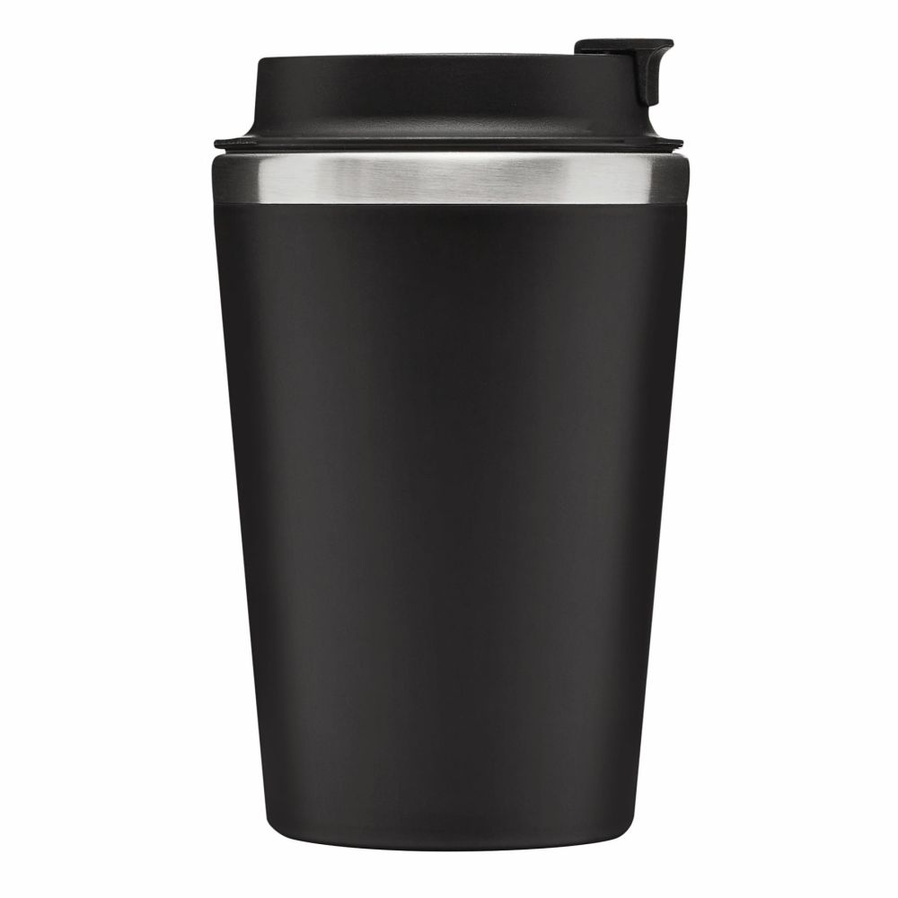 Double-walled travel mug TAKE & GO made of stainless steel on the inside and plastic on the outside, secure screw-on plastic lid with integrated drinking opening and silicone seal, capacity approx. 350 ml, keeps warm for approx. 2 hours and cold for up to 4 hours