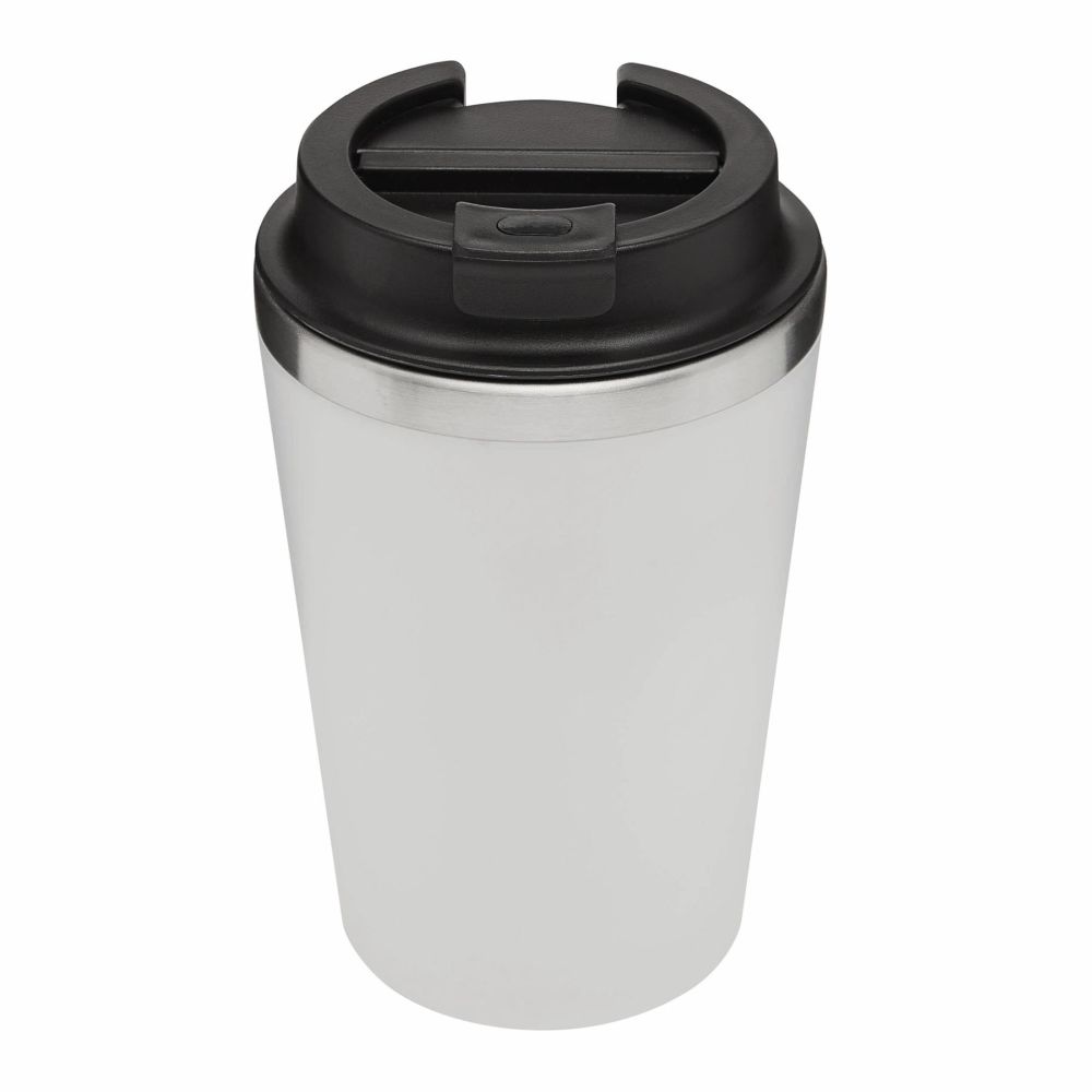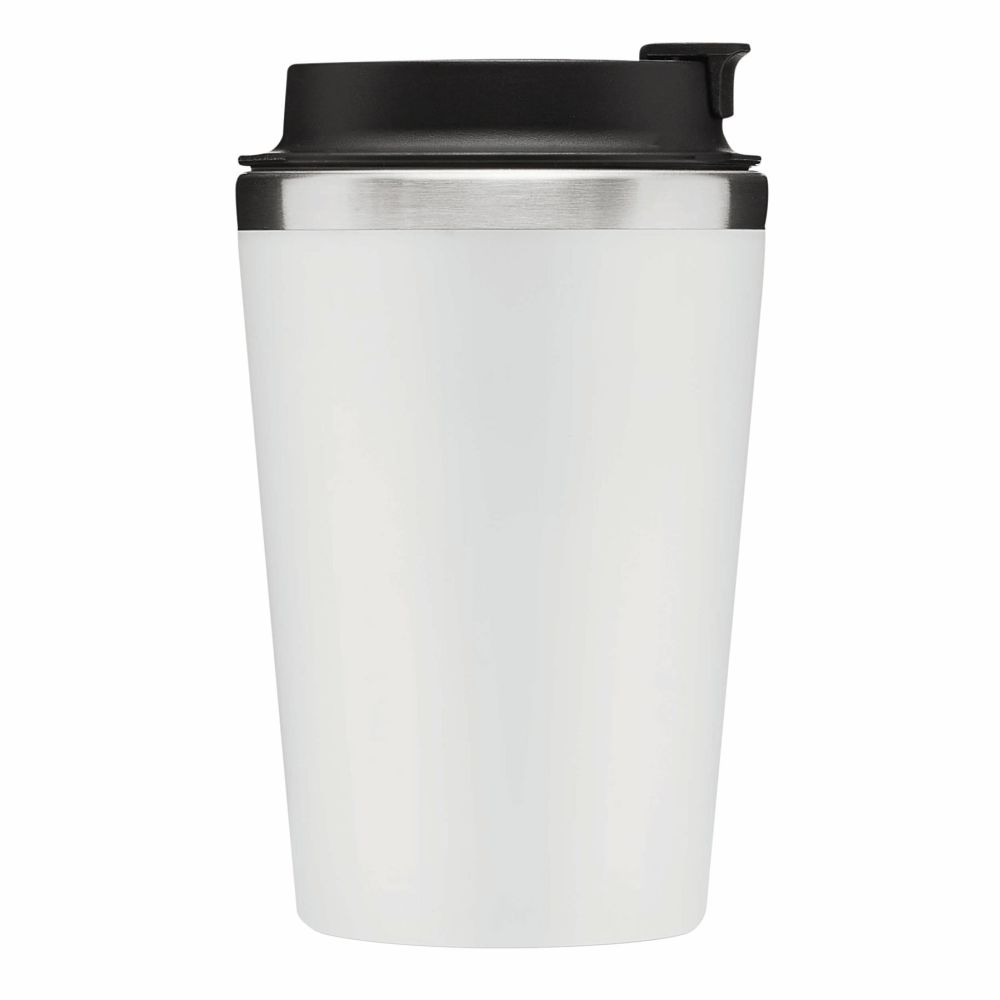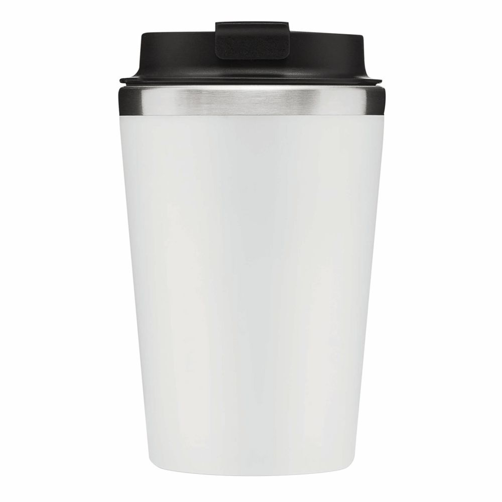 Double-walled travel mug TAKE & GO made of stainless steel on the inside and plastic on the outside, secure screw-on plastic lid with integrated drinking opening and silicone seal, capacity approx. 350 ml, keeps warm for approx. 2 hours and cold for up to 4 hours