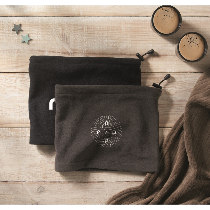 "Fleece multiuse beanie, neckwarmer, polar fleece 200 gsm (100% RPET polyester). One-size-fits-all design."Dimensions: 25 x 23cm