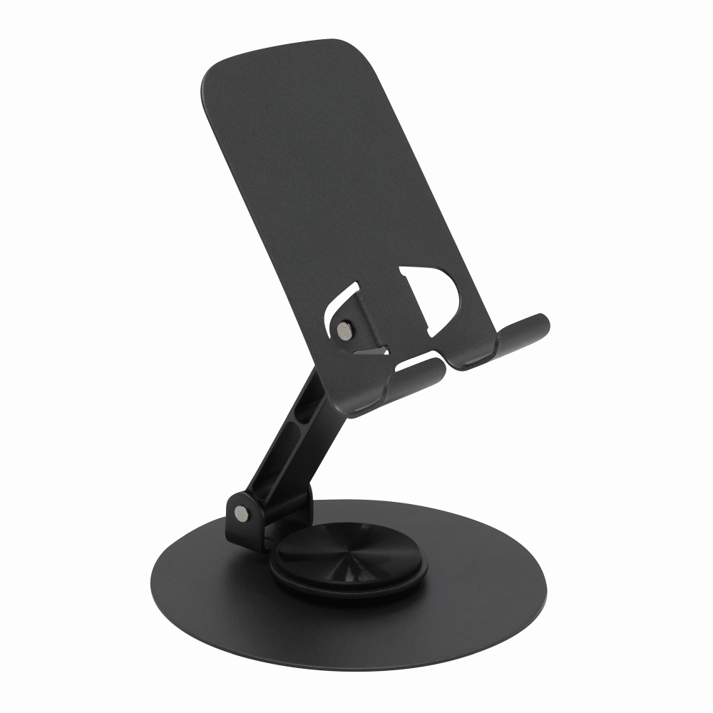 bFoldable phone holder DESK MASTER /b: 360° rotatable, non-slip base, adjustable angle. Dimensions: o 9 x 14 cm