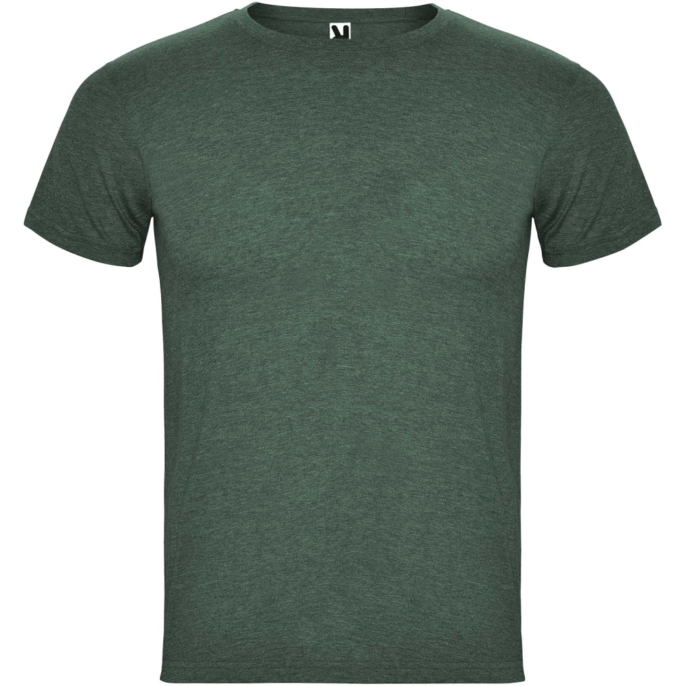 Short-sleeve t-shirt with heathered effect. 1x1 ribbed crew neck with interior reinforced covered seams. Tubular fabric. Removable label.