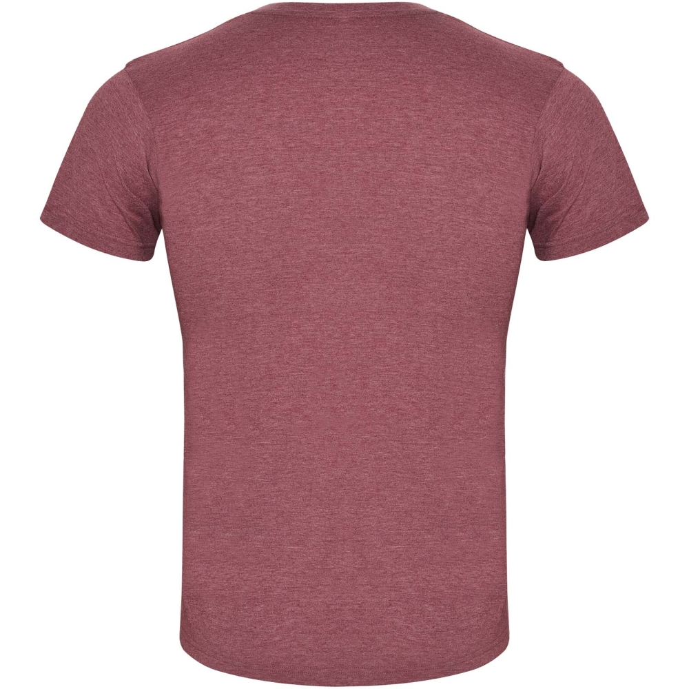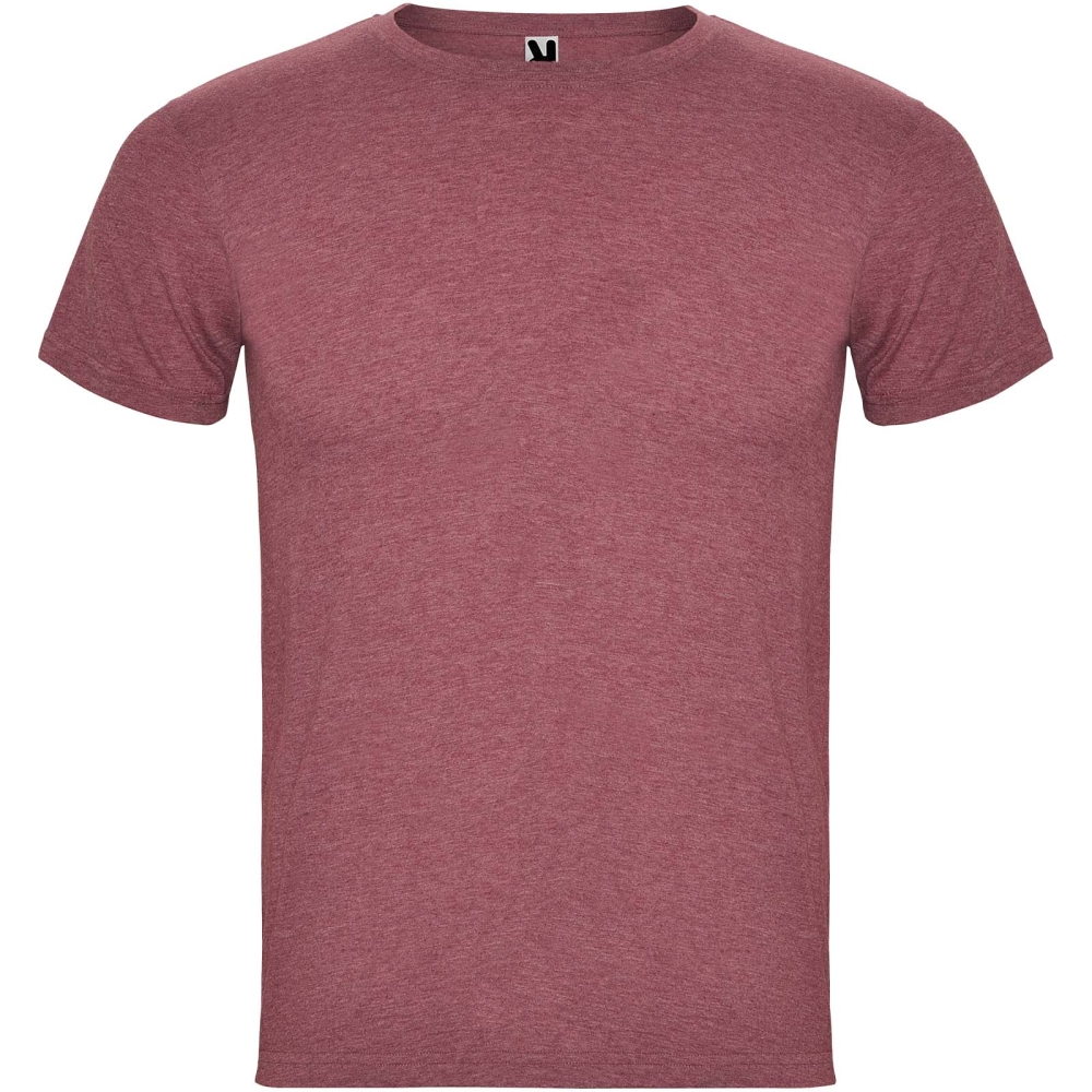 Short-sleeve t-shirt with heathered effect. 1x1 ribbed crew neck with interior reinforced covered seams. Tubular fabric. Removable label.