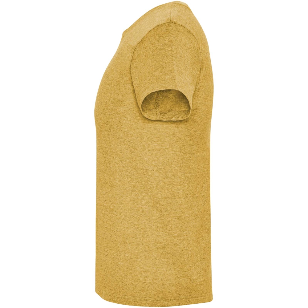 Short-sleeve t-shirt with heathered effect. 1x1 ribbed crew neck with interior reinforced covered seams. Tubular fabric. Removable label.