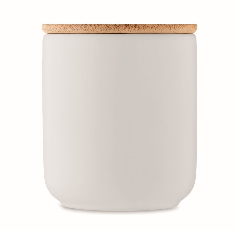 Fresh linen fragranced plant based wax candle in stoneware jar holder with bamboo lid. 200 gr. Burn time: 36 hours. Bamboo is a natural product, there may be slight variations in colour and size per item, which can affect the final decoration outcome.