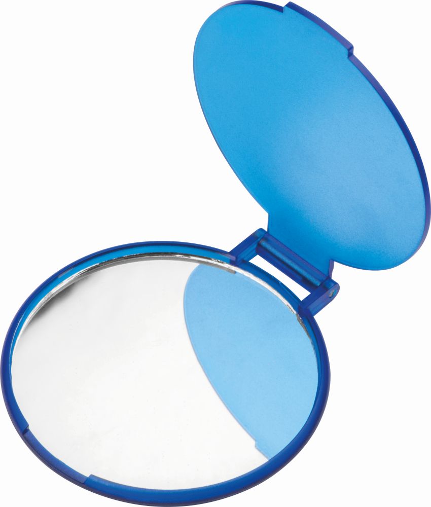 Cosmetic pocket mirror made of moulded plastic. We print your logo on the lid.