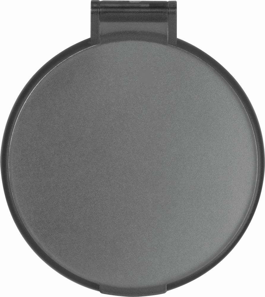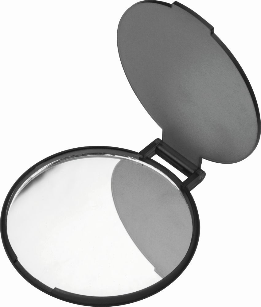 Cosmetic pocket mirror made of moulded plastic. We print your logo on the lid.