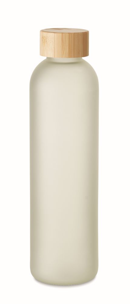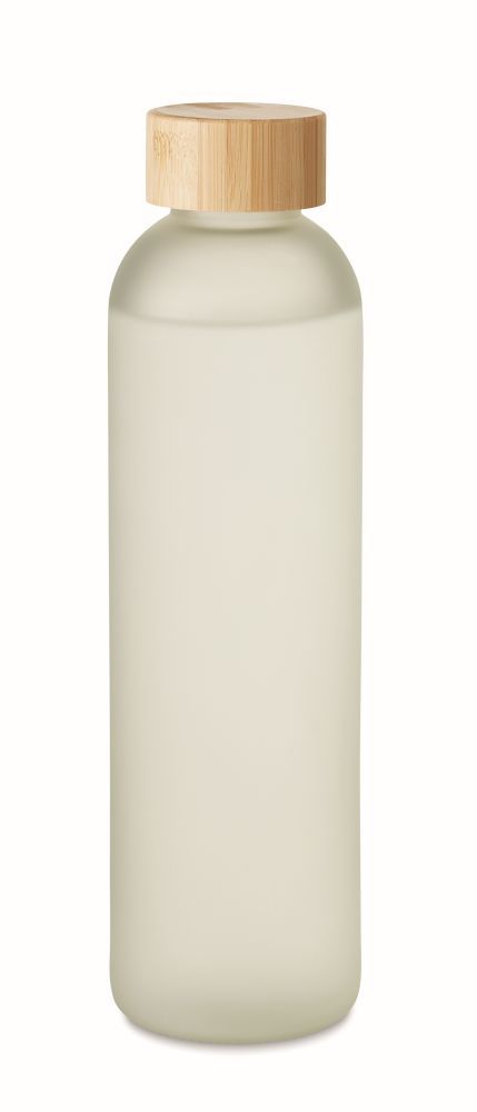 Glass bottle with special coating for sublimation and bamboo lid. Capacity: 650 ml. Bamboo is a natural product, there may be slight variations in colour and size per item, which can affect the final decoration outcome.