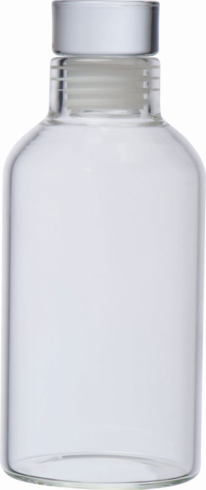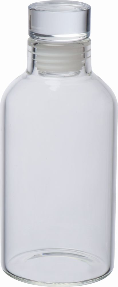 Drinking bottle made of borosilicate glass with 300ml capacity and screw cap. We will print your advertising on the bottle.