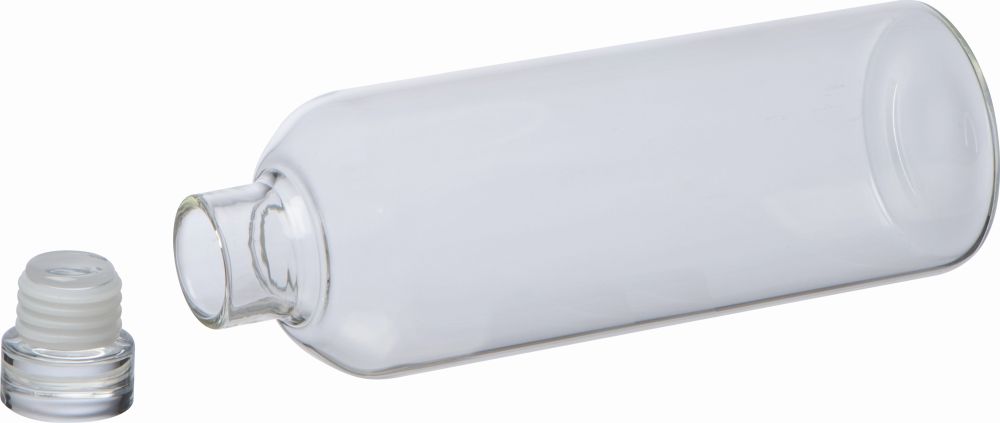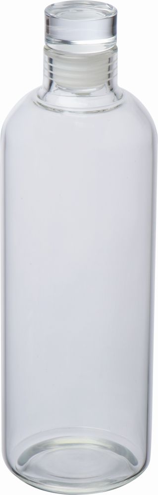 Large drinking bottle made of borosilicate glass with 750ml capacity and screw cap. We will print your logo on the bottle.