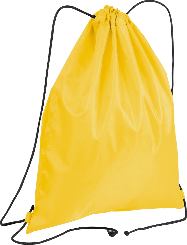 Gymbag made of 210D recycled polyester with 2 side cords as carrying straps. There are countless possible uses, e.g. as a gym bag or laundry bag. We will print your logo on one side. Dimensions: