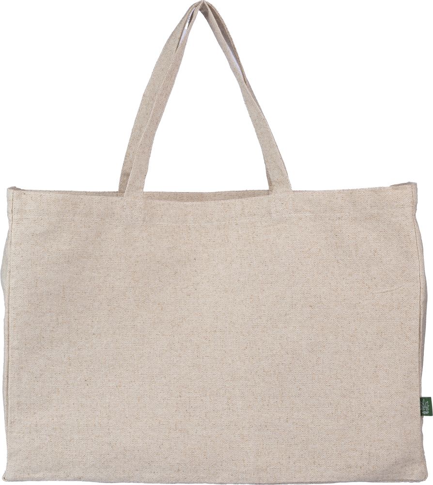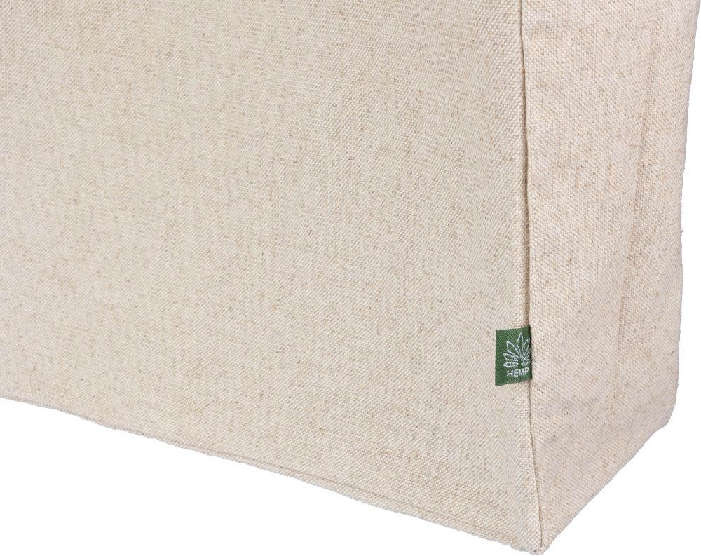 Hemp (280 gr/m2) tote bag with short handles, including a hemp logo on the label.