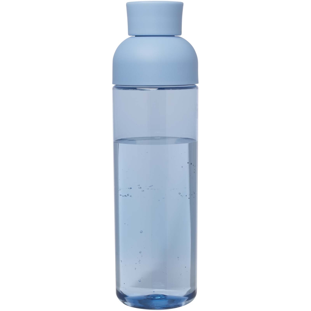 The Illuminate RPET water bottle is made from recycled plastic and features a comfortable silicone handle for easy carrying. Features a volume capacity of 600 ml and is designed to easily fit in the side pocket of a backpack, as well as in most car cup holders. The two-piece construction makes it easy to clean. BPA free. EFSA certified (European Food Safe Authority). Dimensions: 6,8 x 23,5 x 6,8 x O 6,5 cm
