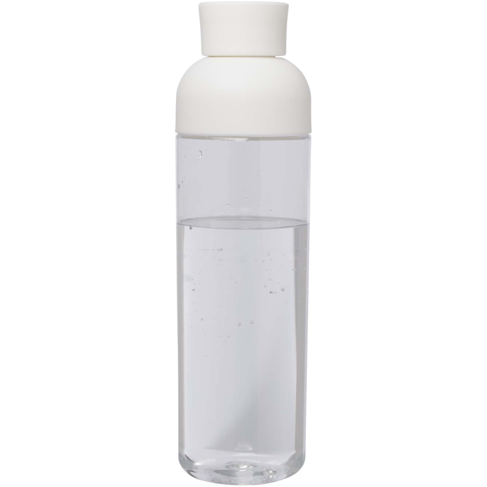 The Illuminate RPET water bottle is made from recycled plastic and features a comfortable silicone handle for easy carrying. Features a volume capacity of 600 ml and is designed to easily fit in the side pocket of a backpack, as well as in most car cup holders. The two-piece construction makes it easy to clean. BPA free. EFSA certified (European Food Safe Authority). Dimensions: 6,8 x 23,5 x 6,8 x O 6,5 cm