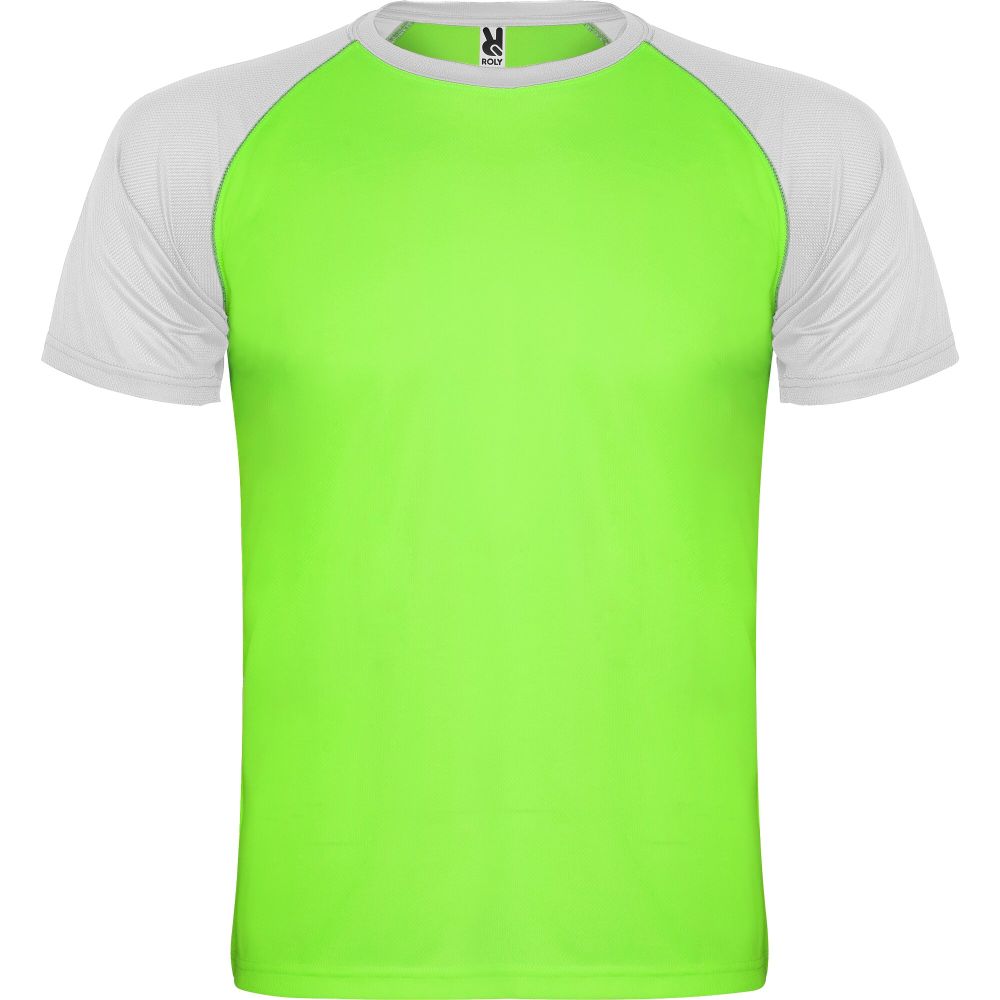 Technical and breathable fabric. Raglan contrasting sleeves. Crew neck with contrasting reinforced covered seams. Removable label. Mesh with cool fit finish of 100% Polyester, 140 g/m2.