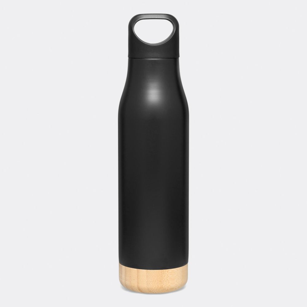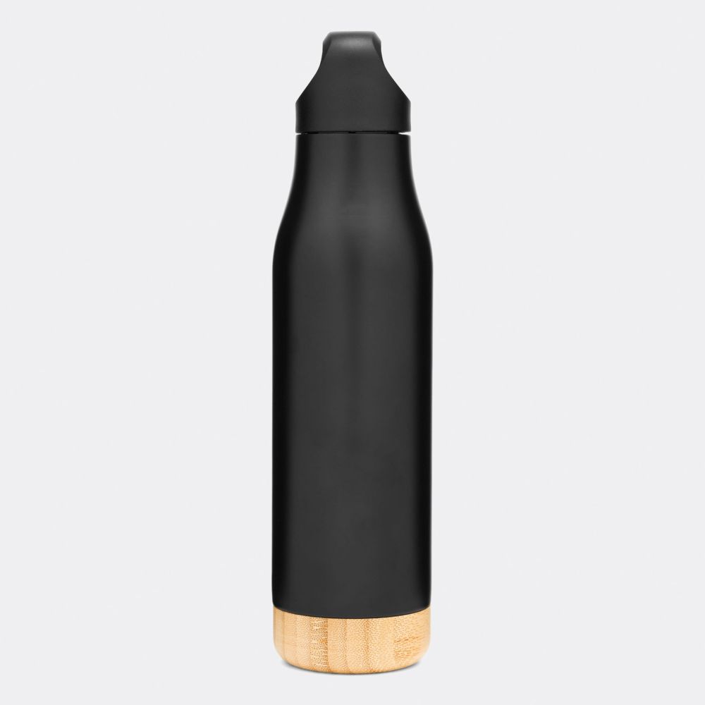 Insulated drinking bottle BAMBOO LEGEND double-walled: inside and outside made of stainless steel, secure plastic screw cap, bamboo bottom, capacity approx. 500 ml, keeps warm for approx. 12 hours and cold for up to 24 hours