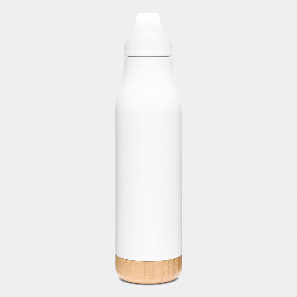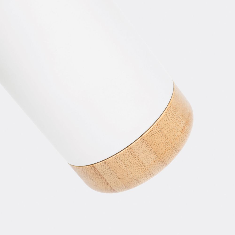 Insulated drinking bottle BAMBOO LEGEND double-walled: inside and outside made of stainless steel, secure plastic screw cap, bamboo bottom, capacity approx. 500 ml, keeps warm for approx. 12 hours and cold for up to 24 hours