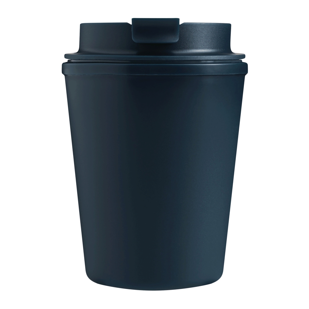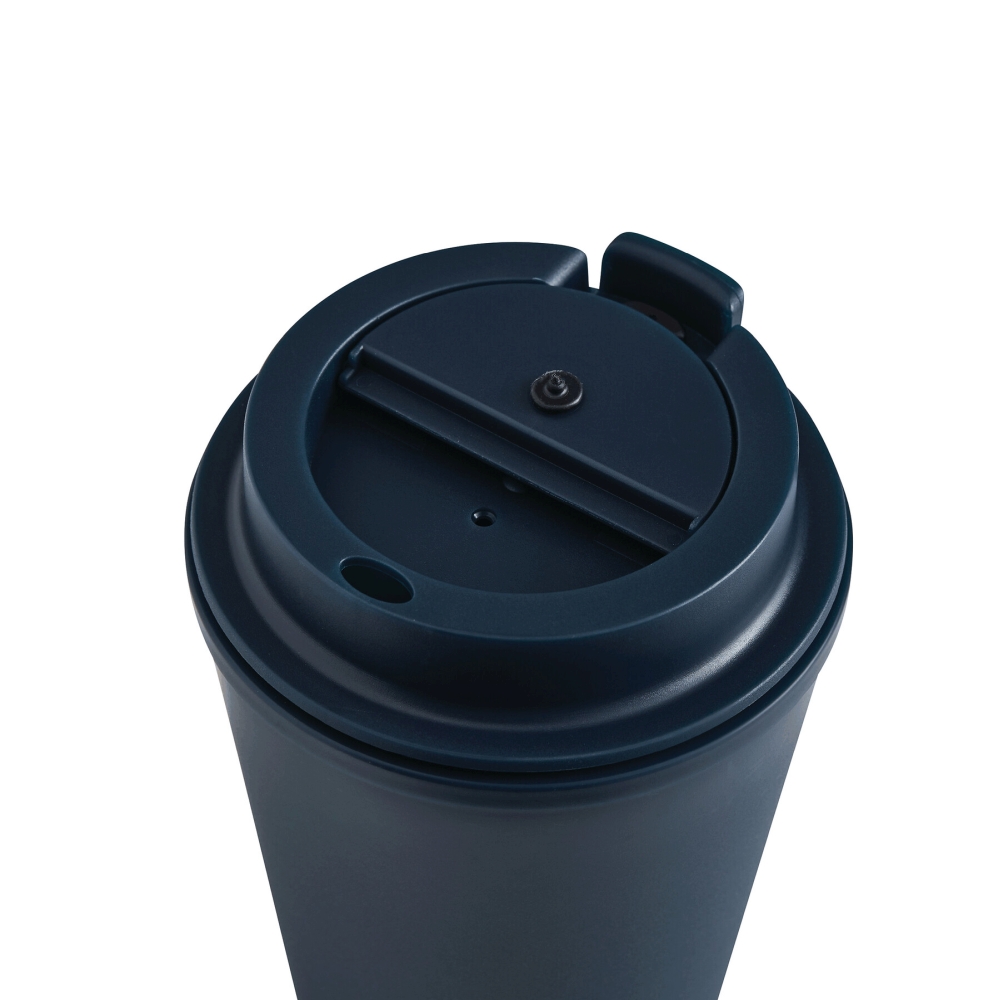 Insulated mug, double-walled: inside and outside made of plastic, secure screw cap with silicone seal and integrated fold-out drinking opening, capacity approx. 350 ml, keeps warm for approx. 2 hours and cold for up to 4 hours. Dimensions: O9,2 x 13 cm