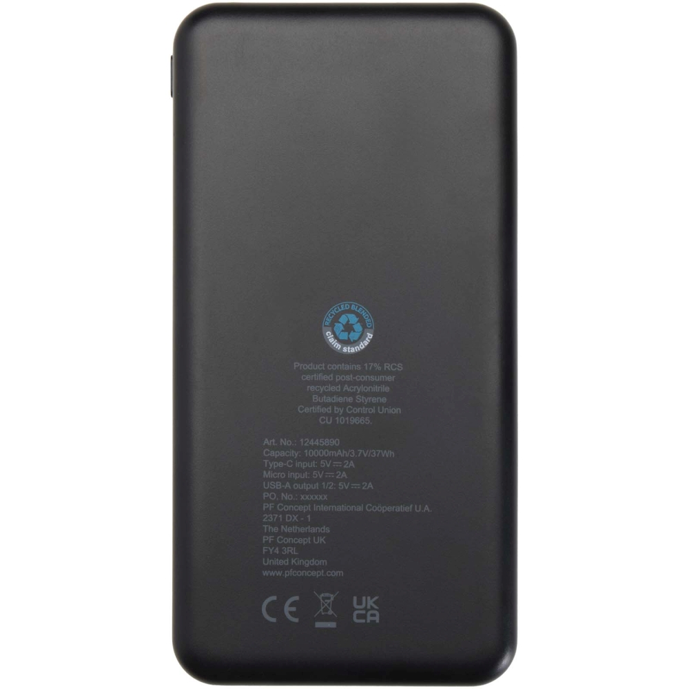 Intan 10.000 mAh 10W recycled plastic power bank, solid black