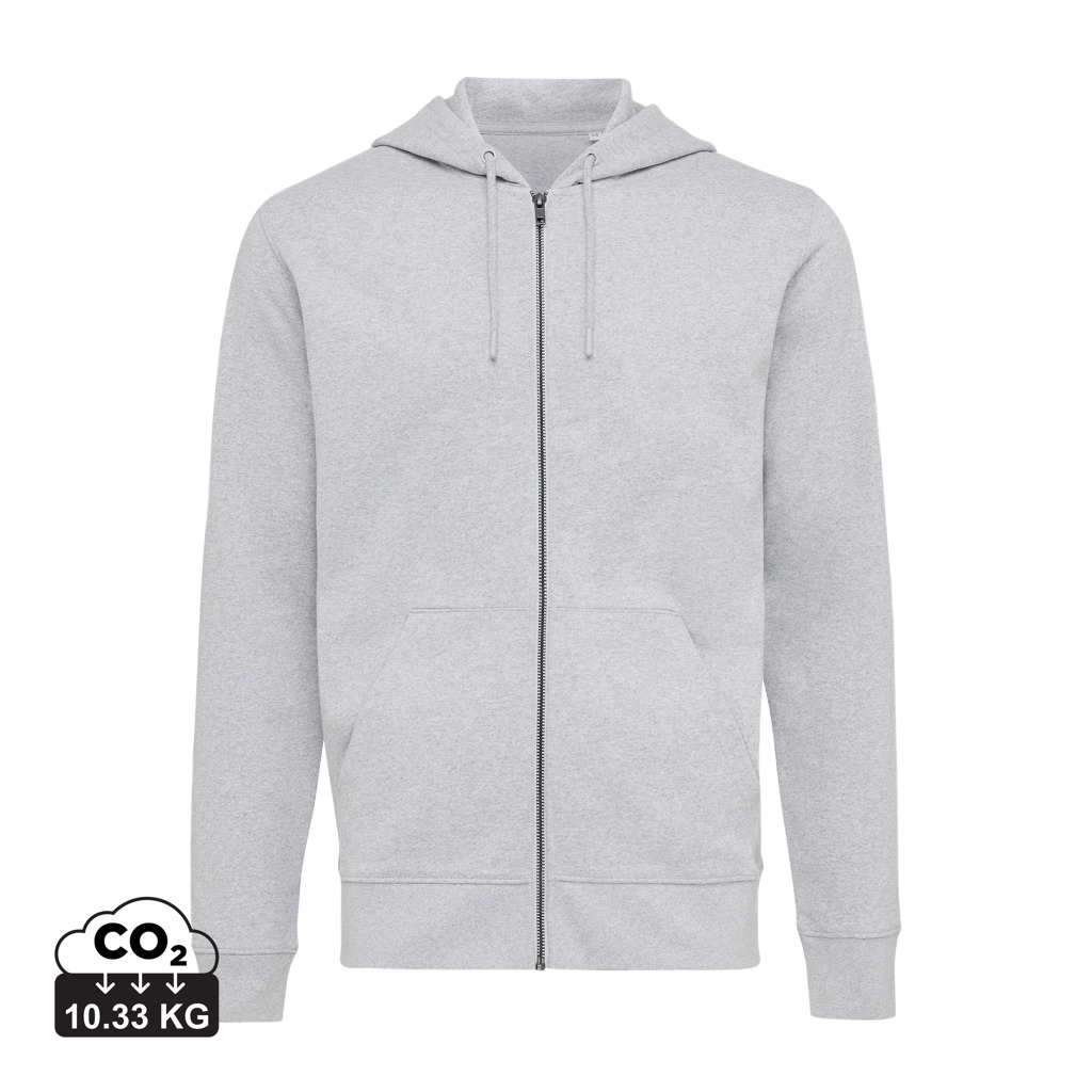 Unisex regular fit zip through hoodie made from 100% cotton, of which 50% is recycled and 50% organic, in 340 G/M2. The zip through hoodie has a double-layered hood, long sleeves and 1 x 1 rib. The inside is soft-brushed fleece for extra comfort. The use of genuine recycled & organic fabric materials and environmental impact claims are guaranteed, by using the AWARE™ disruptive physical tracer and blockchain technology. By scanning the QR code, you will gain access to a dedicated digital passport of the product. 2% of proceeds of each product sold will be donated to Water.org. This product is OEKO-TEX® STANDARD 100 2303045 Centexbel certified. Due to the nature of recycled yarns, impurities and colour variations may appear.
