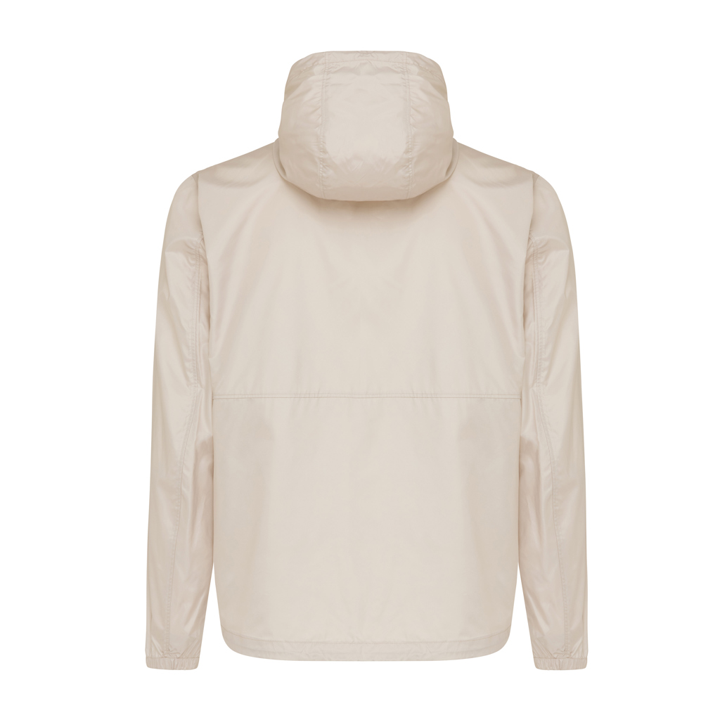 Unisex lightweight jacket made from 100% post-consumer recycled polyester in 70 G/M2. The jacket has an adjustable hood with elastic string and a reversed zipper at the front and seam welt pockets. All zippers have extra zip pullers in matching colour for a refined look. The cuffs are fully elasticated. The back of the jacket is slightly longer and curved and the bottom hem has an elastic string and stoppers for better protection. Fluorine/PFAS free water repellent impregnation. The use of genuine recycled fabric materials and environmental impact claims are guaranteed, by using the AWARE™ disruptive physical tracer and blockchain technology. By scanning the QR code, you will gain access to a dedicated digital passport. 2% of proceeds of each sold product will be donated to Water.org. This product is OEKO-TEX® STANDARD 100 certified.