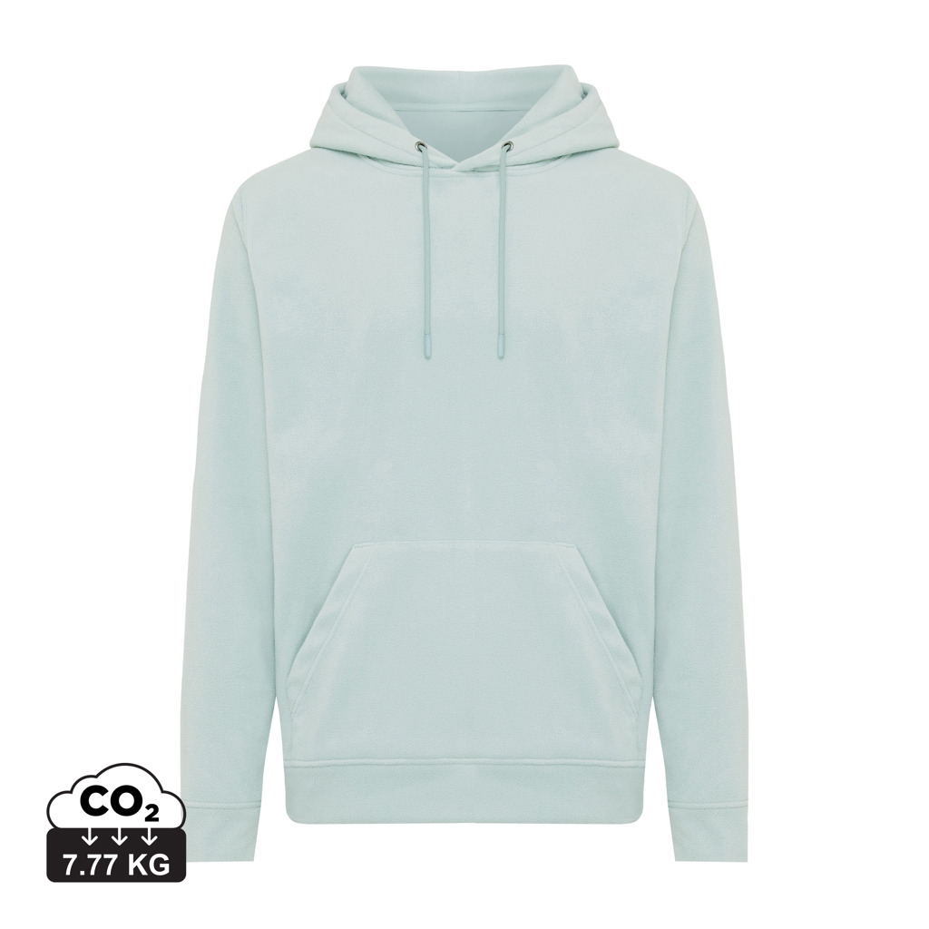 Unisex microfleece hoodie made from 100% post-consumer recycled polyester in 240 G/M2. This fleece hoodie envelops you in softness and warmness. It has a convenient kangaroo pocket, double-layered hood with a tonal drawstring and metal eyelets. The Inside half-moon in woven fabric offers a perfect personalised inside neck print. Bottom hem and sleeve cuffs are made from self-fabric for extra softness. The use of genuine recycled & organic fabric materials and environmental impact claims are guaranteed, by using the AWARE™ disruptive physical tracer and blockchain technology. By scanning the QR code, you will gain access to a dedicated digital passport of the product. 2% of proceeds of each sold product will be donated to Water.org. This product is OEKO-TEX® STANDARD 100 certified.