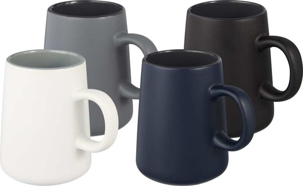 The Joe ceramic mug has a matt exterior with glossy interior, featuring a round and comfortable handle. Volume capacity is 450 ml. Dishwasher safe for all printing methods. Presented in a recycled cardboard gift box.