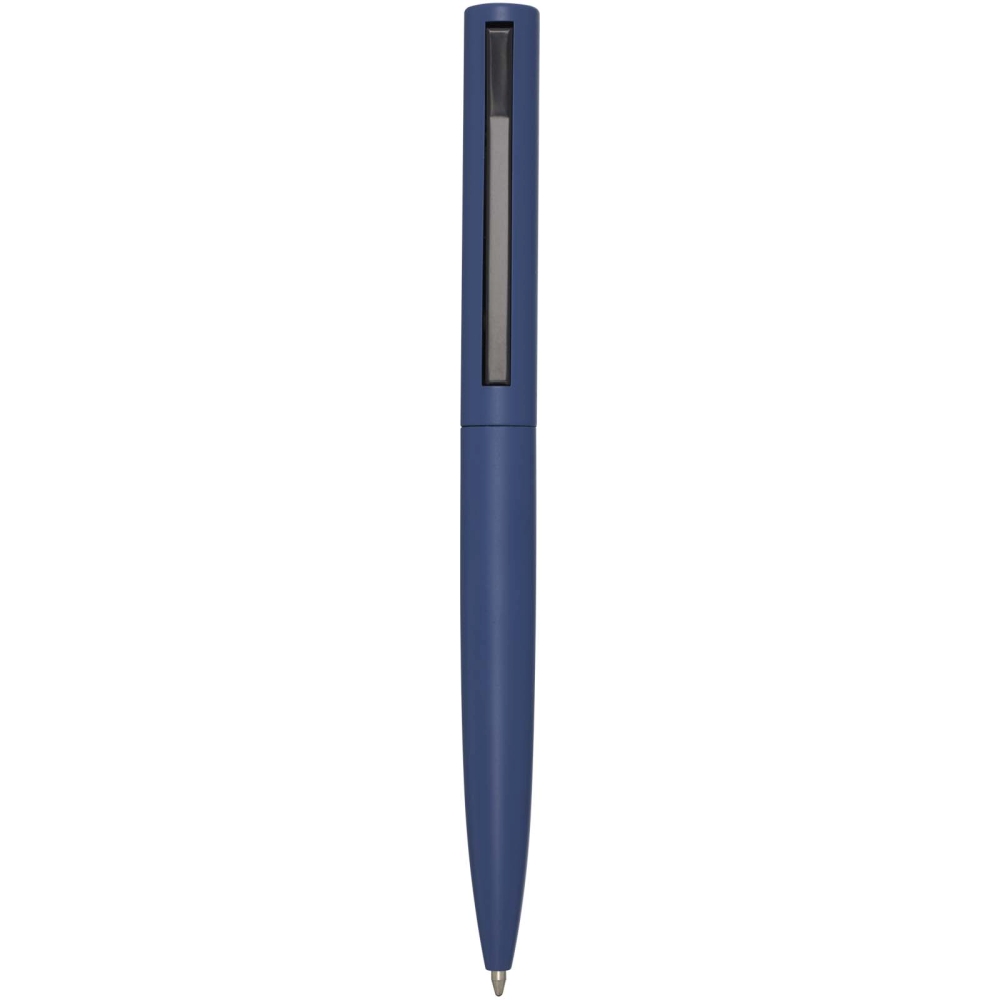 Ballpoint pen with the upper barrel made of recycled plastic, and the lower part is made of recycled aluminium. The clip is made of iron. Ink colour: Blue. Writing length: 1000 metres. Nib size: 1.0 mm. Dimensions: 14,5 x O 1,5 cm