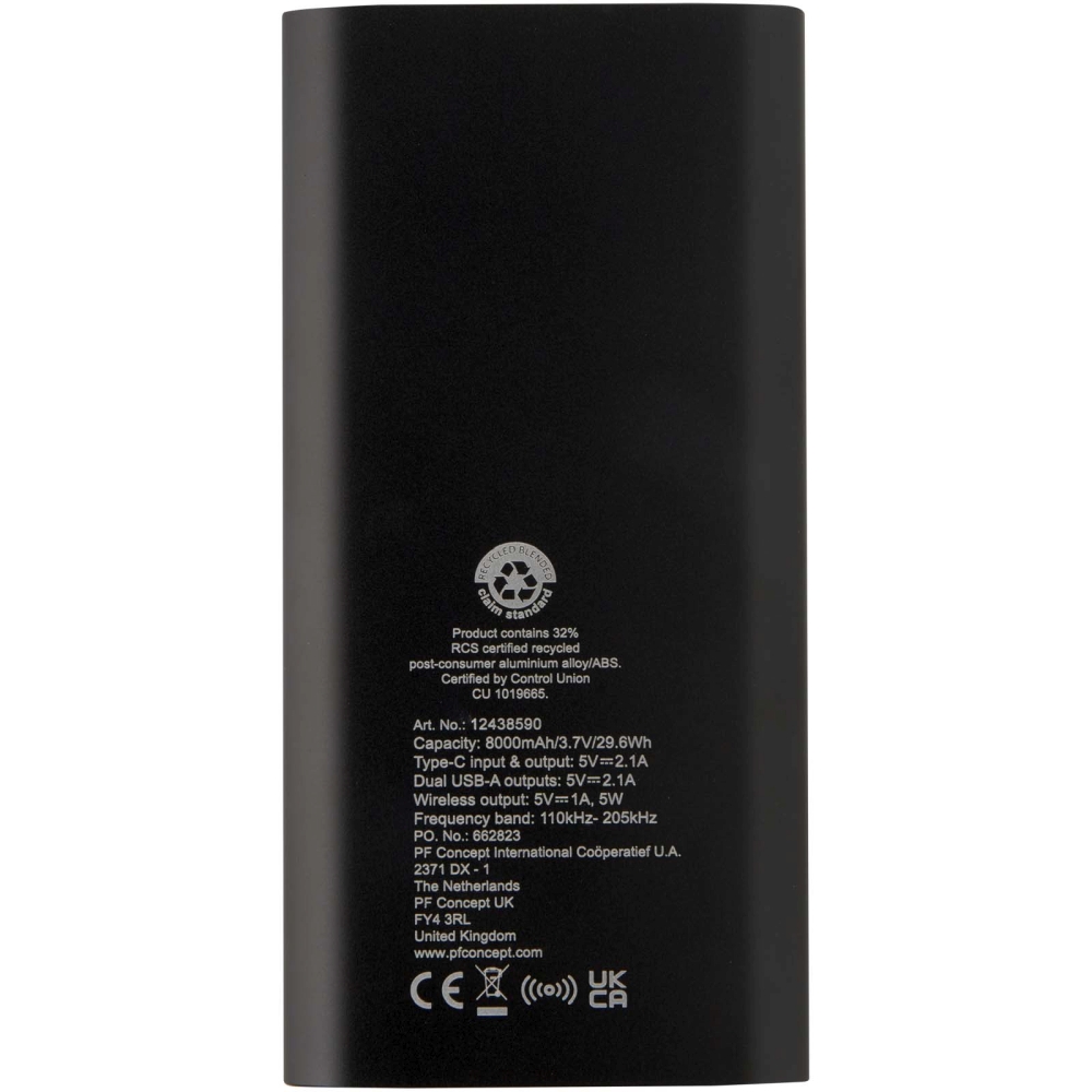 Juice 8000 mAh Type-C recycled aluminium wireless power bank, solid black