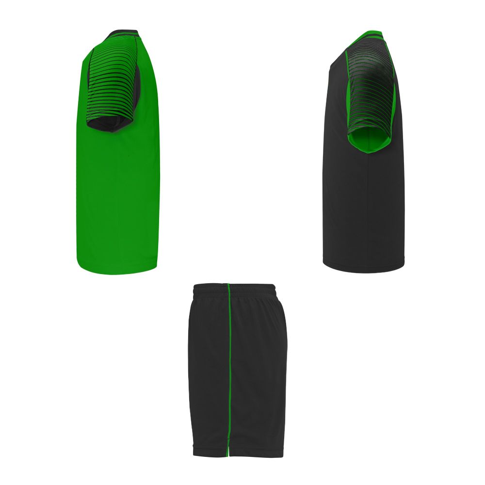 Set consists of 2 t-shirts and 1 pair of shorts. The colour of the second t-shirt is designed in the opposite way of the first one. Technical and breathable fabric. T-shirts with printed semi-raglan sleeves. Crew neck with tricot on the back. Elastic waistband in shorts with matching inner drawcord with security stitching. Shorts with contrasting side stripe and slits on hem. Removable label. 100% Polyester, 140 g/m2.