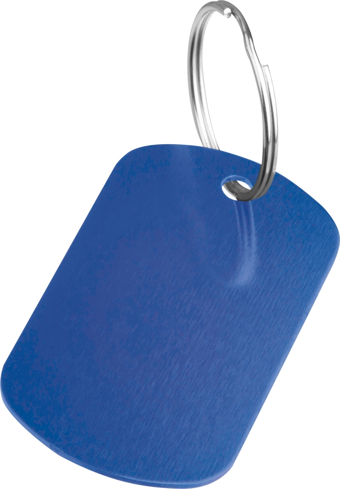 Stylish key fob made from recycled aluminium in the fashionable design of a dog tag. We engrave your logo on the metal plate. Dimensions: 4,8 x 2,9 x 0,2 cm