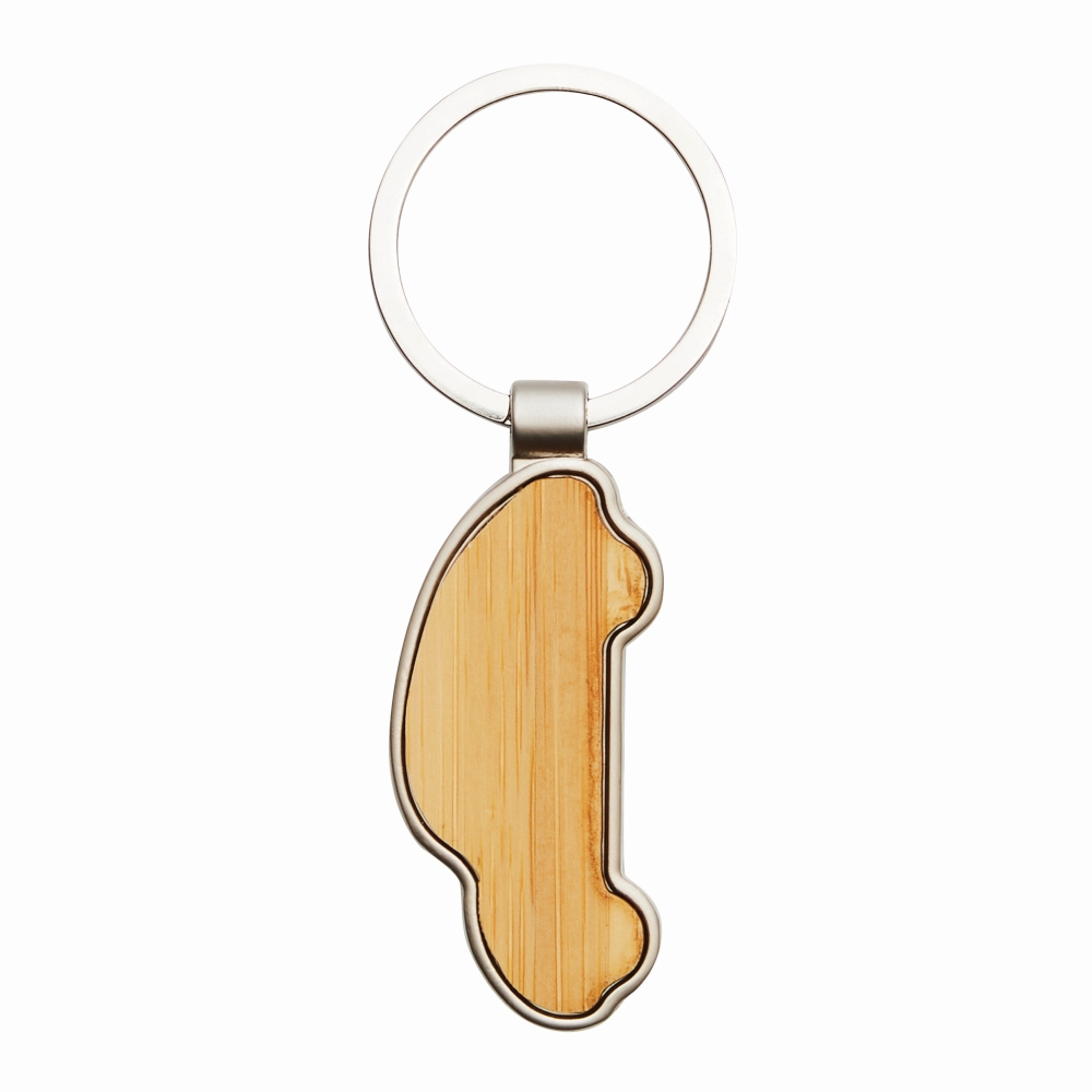 bKey ring MY CAR /b: metal car shape with bamboo front. Dimensions: 8,3 x 2,4 cm