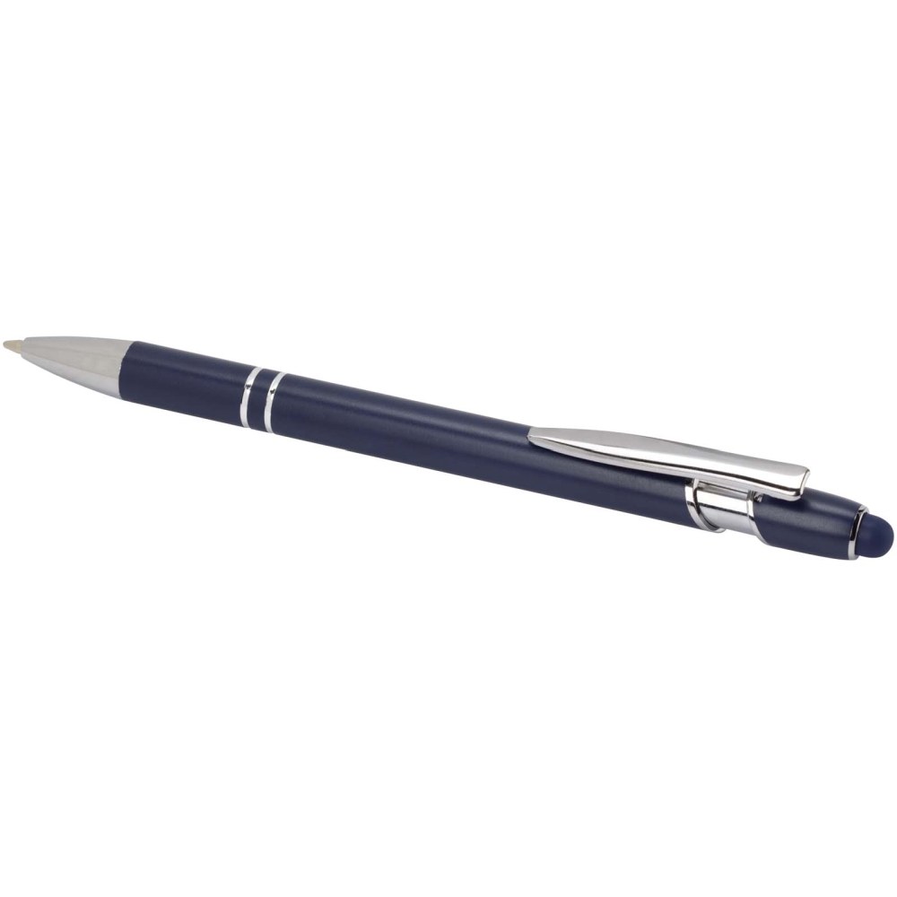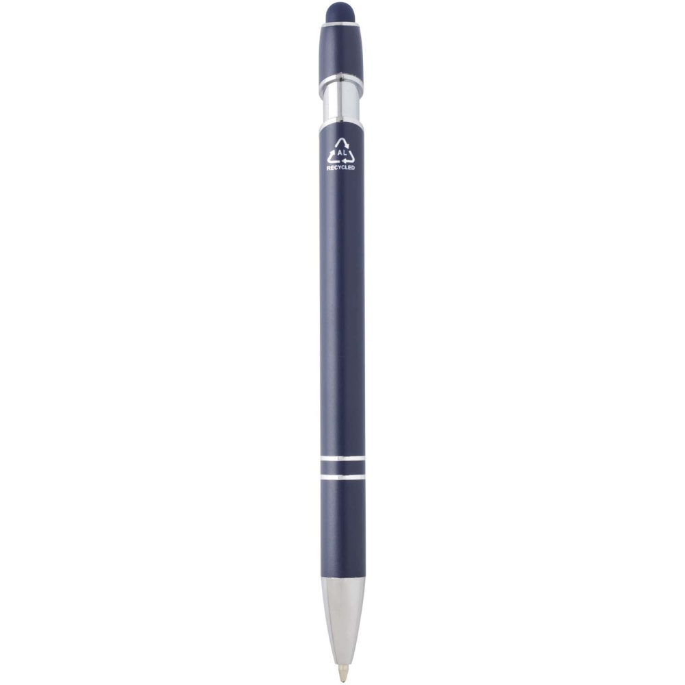 The Kish ballpoint pen with silver finish has a barrel made of recycled aluminium with a touch stylus made of silicone. Recycled aluminium reduces the amount of waste in landfills and helps to conserve natural resources aiming to reduce greenhouse emissions. Ink colour: Black. Writing length: 800 metres. Nib size: 1.0 mm. Dimensions: 14,4 x O 1 cm