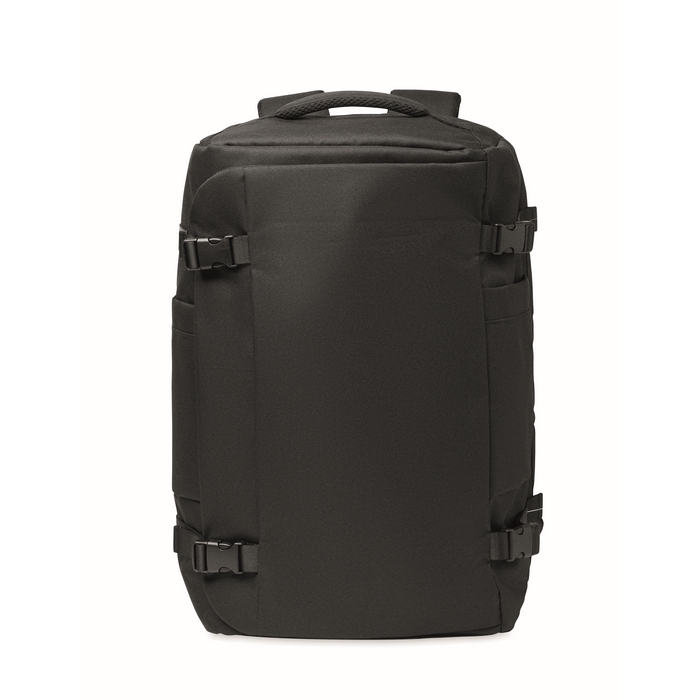 Large travel 17 inch laptop backpack in 600D RPET polyester. Features several compartments as one main for clothes, two padded for laptop, tablet and more. Padded back panel, shoulder strap, hand grip.Dimensions: 34 x 23 x 52cm
