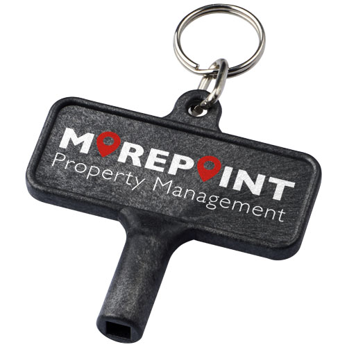 Utility key with keychain for items such as radiators, meterboxes, street poles. The dimensions for the opening is a square shape with 5 mm edges.