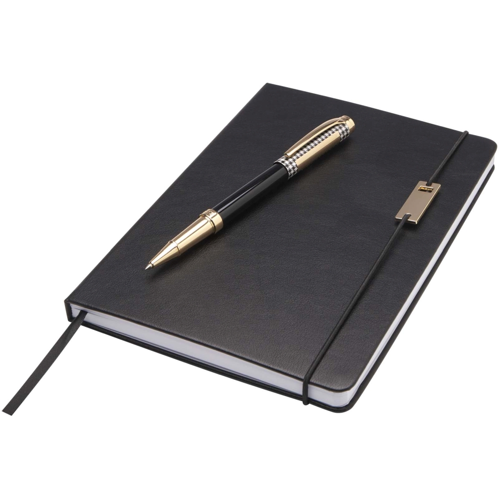 Legato A5 notebook and rollerball pen set (blue ink), solid black