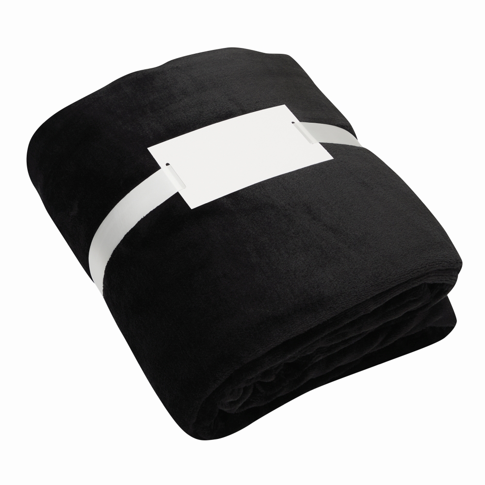 Fleece blanket, super soft and cozy blanket made of 230 g/m2 polyester plush fleece, washable, covered with polyester ribbon and card for printing. Dimensions: 200 x 150 cm