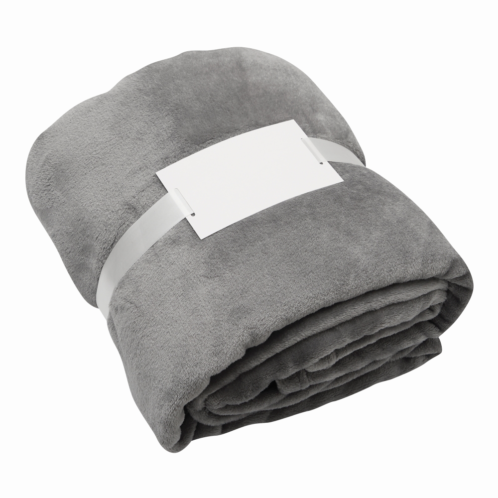 Fleece blanket, super soft and cozy blanket made of 230 g/m2 polyester plush fleece, washable, covered with polyester ribbon and card for printing. Dimensions: 200 x 150 cm