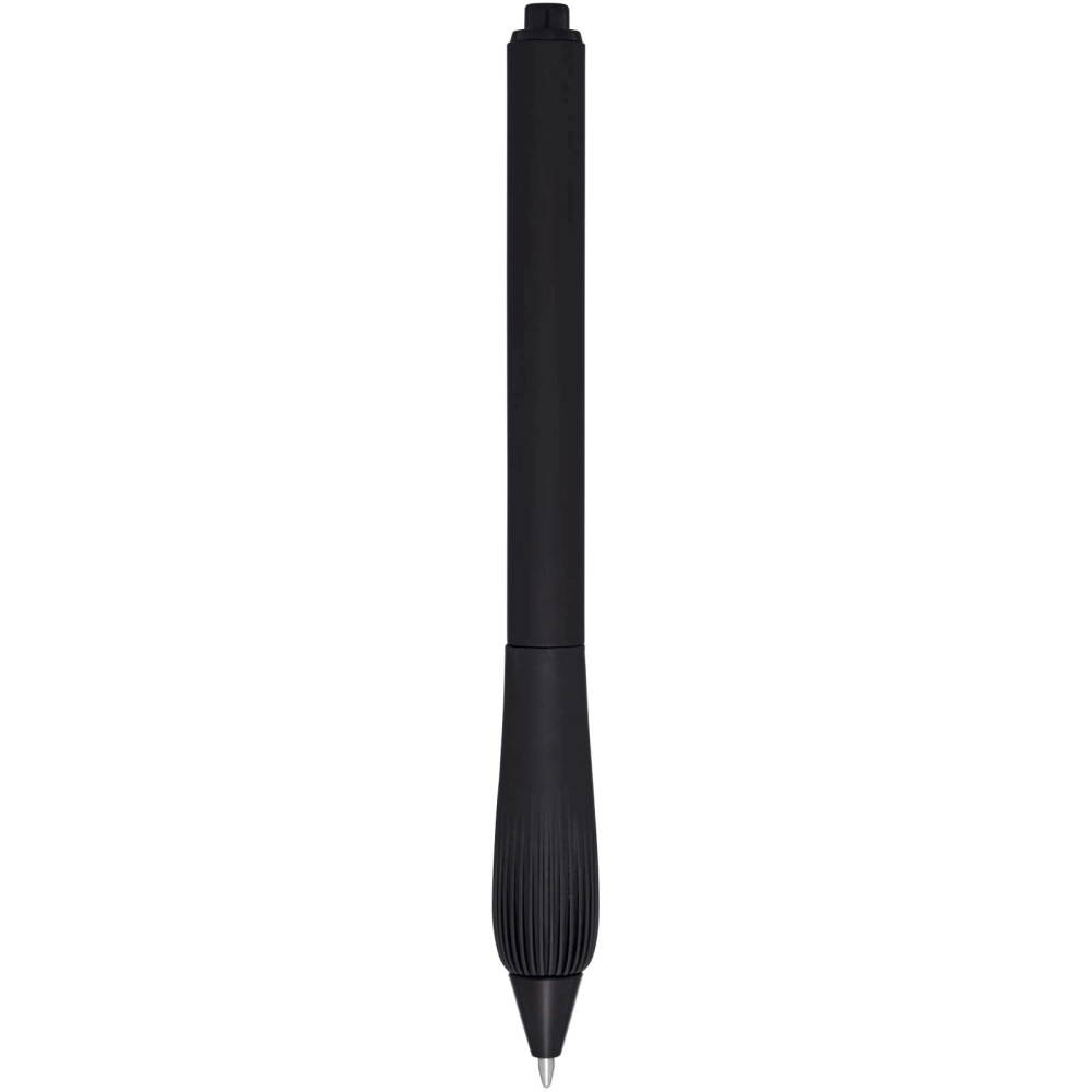 Recycled plastic ballpoint pen with a rubberized barrel, and grip made of TPR. Ink colour: Blue. Writing length: 1000 metres. Nib size: 1.0 mm. Dimensions: 14,3 x O 1,02 cm