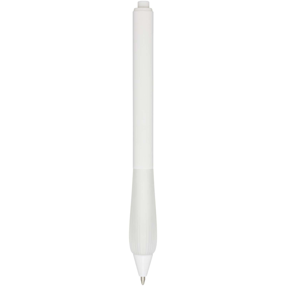Recycled plastic ballpoint pen with a rubberized barrel, and grip made of TPR. Ink colour: Blue. Writing length: 1000 metres. Nib size: 1.0 mm. Dimensions: 14,3 x O 1,02 cm