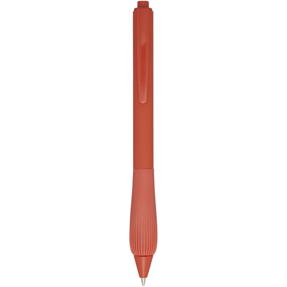 Recycled plastic ballpoint pen with a rubberized barrel, and grip made of TPR. Ink colour: Black. Writing length: 1000 metres. Nib size: 1.0 mm. Dimensions: 14,3 x O 1,02 cm