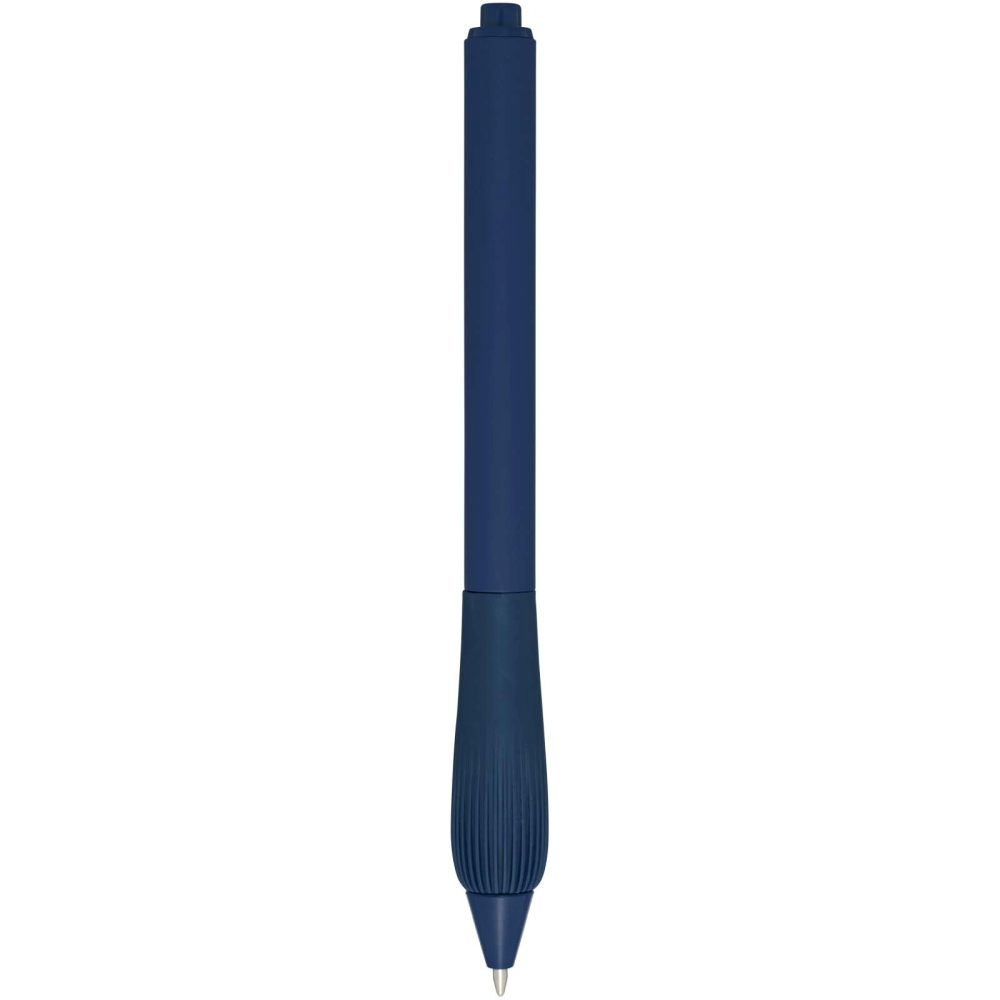 Recycled plastic ballpoint pen with a rubberized barrel, and grip made of TPR. Ink colour: Black. Writing length: 1000 metres. Nib size: 1.0 mm. Dimensions: 14,3 x O 1,02 cm