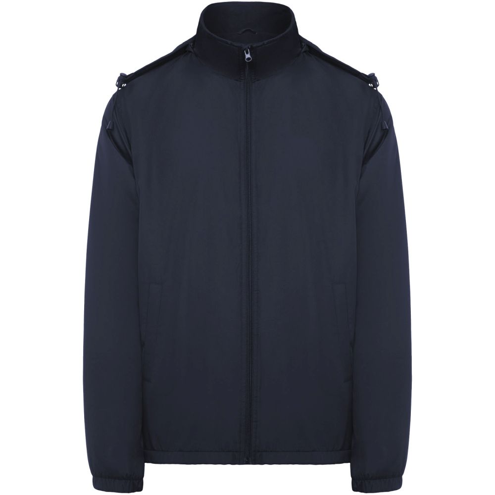 Light waterproof jacket. High collar and foldable hood with adjusters. Microfleece lining. Front zip and chin protector. Elastic cuffs. Two side pockets with zip. Interior left chest pocket. Removable label. Waterproof. Wind-proof. The male model is 184 cm and is wearing size L, and the female model is 174 cm and is wearing size S.