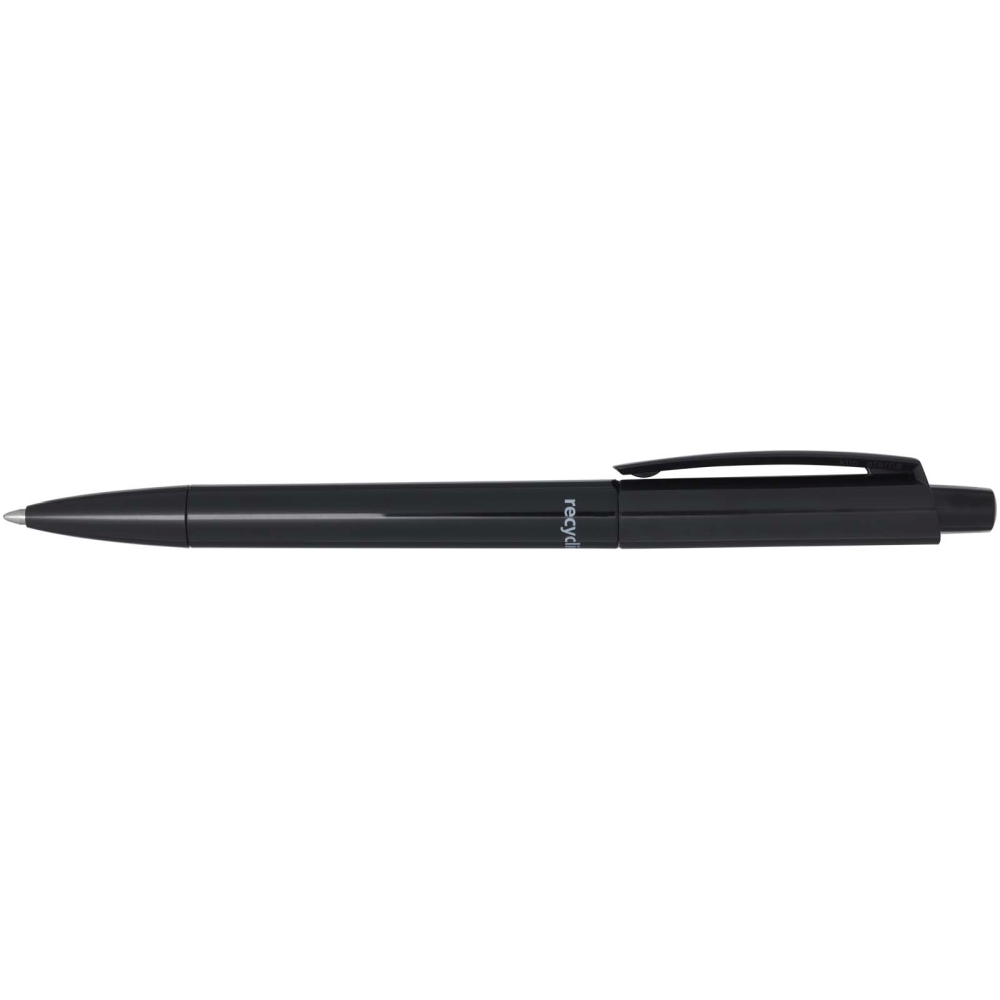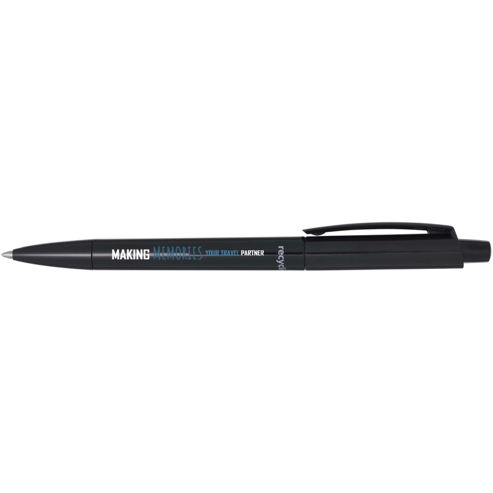Ballpoint pen made of recycled plastic. Ink colour: Black. Writing length: 3000 metres. Nib size: 1.00 mm. Made in Germany. Dimensions: 14,8 x O 1,05 cm
